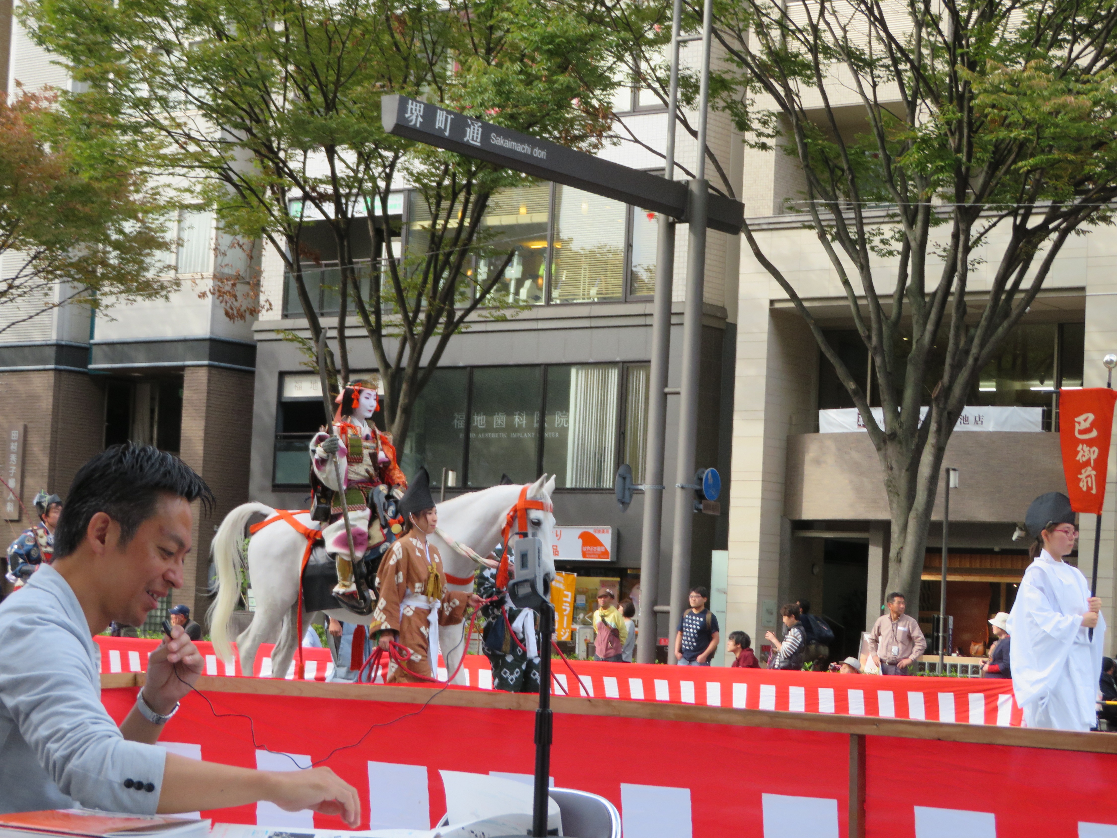 料亭を出て10分程歩き、今回のメインテーマである時代祭を限定プレミアム席で観覧いたしました。この限定プレミアム席は発売後1分で売り切れる人気チケットだそうです。