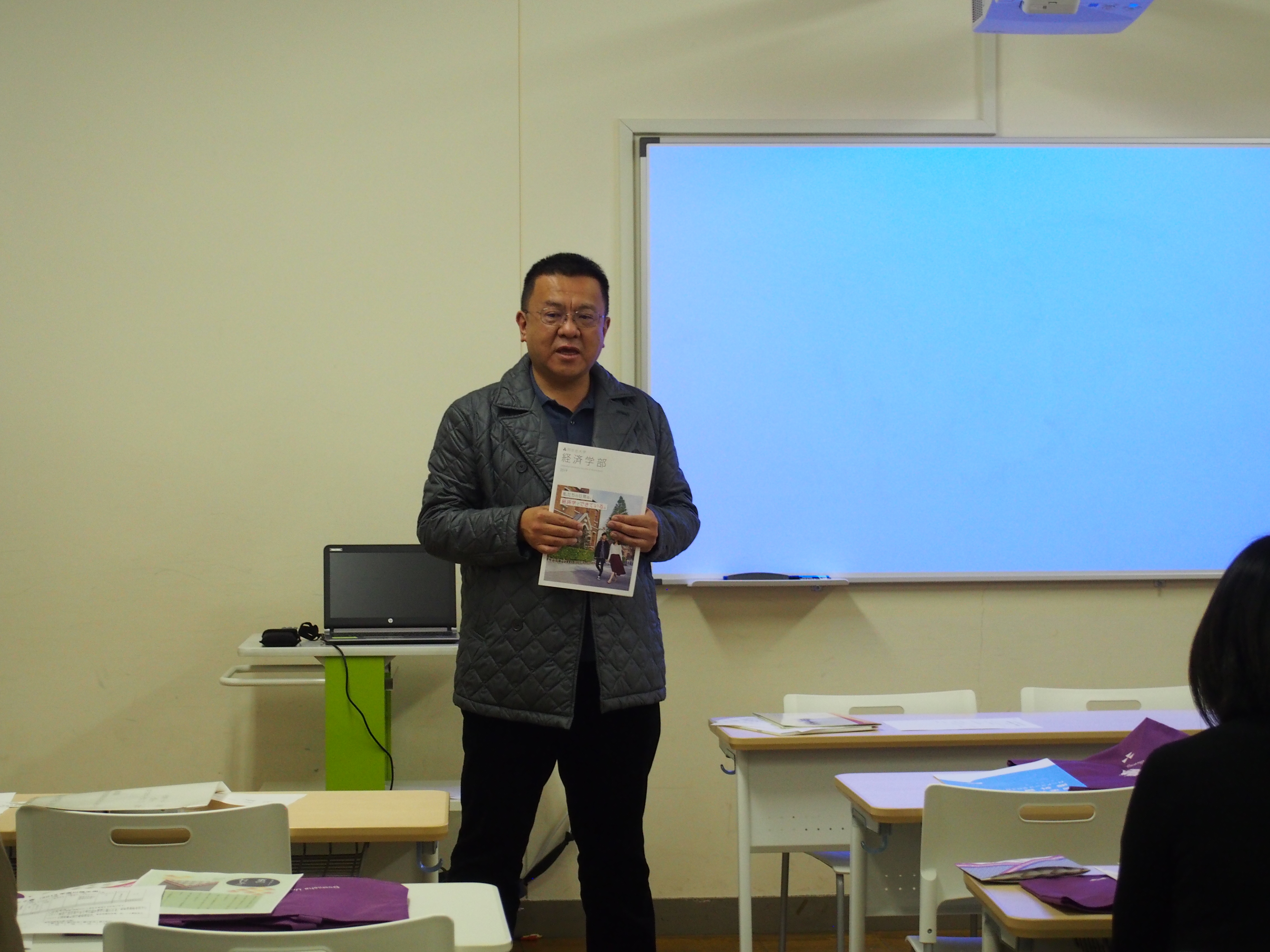 始めに父母会参与、横井和彦教授より経済学部の学びについてお話ししていただきました。