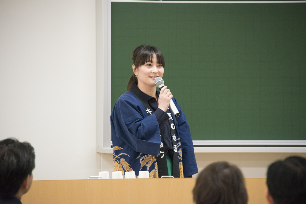 喜多氏は経済学部の卒業生。滋賀県にある日本酒「喜長楽」の蔵元を継がれます。「飲む」「造る」「継ぐ」の3つの視点でお話下さいました。伝統を踏まえ、これからの取り組みは、品質向上のための設備投資、新商品の開発、海外進出等々。蔵元を継ぐことは「開拓」ではなく、「発掘」すること。日本酒は知れば知るほど楽しくなる。2020年に創業200年を迎えます。世界の中の日本酒「喜楽長」を目指しておられます。