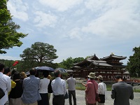 当日は晴天で、鳳凰堂の景観は全面にある阿迂池側から見る姿がとても美しく、池には鳳凰堂の姿が映り込み幻想的でした。扉が閉じてありましたが、極楽浄土を祈り丁寧に手をあわせました。