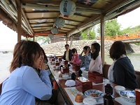 「夏の風物詩宇治川の鵜飼」より一足早く春の鵜飼船にて、川面に吹く時折さわやかな風を感じながら老舗辰巳屋のおいしいお料理をいただきました。