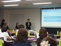 始めに父母会参与の先生から学業履修、学生プロジェクト、海外インターンシップの取り組みについて説明がありました。