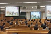 始めに谷村学部長から、卒業論文の質を高めるため、もっと沢山の内容のよい文献を読んでほしいという話と、日比野父母会会長にご挨拶いただきました。