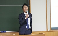 森川氏からは現在の就職状況を京都府と全国のデータを比較してお話しいただきました。佐合井氏からは小川珈琲の現在の取り組みである技術力・品質を高めて生産者の想いを消費者に届けるサプライチェーンをコーヒーを通して行われており、コーヒー作りの中で様々な社会貢献活動にも参画されているというお話をいただきました。渡辺氏からは永年の実績を元に、ITではトータルソリューション体制で先進の情報通信環境を築き、電気・電話関係では急速に高度化する社会に便利で役立つ情報通信設備を提供し、それらのメンテナンスとサポートも行なっているという内容のお話をいただきました。