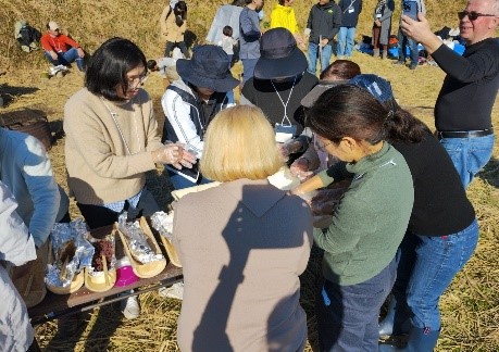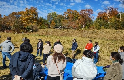 当日は、秋晴れ。寒い予報でしたが、少し活動すると汗ばむほどに。タクシーから降りた瞬間に広がる「里山きゃんぱす」に、皆さん初めは驚かれた様子でした。