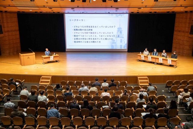 休憩を挟んで、パネルディスカッション『今年の就職活動のリアル~4年生からのレポート』と題し、宮本大教授と4年次生のゼミ生の方々で、就職活動の現状をお話しいただきました。