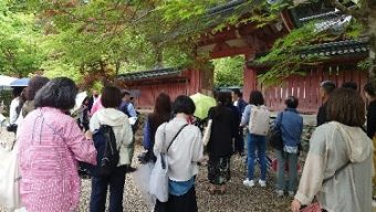 参加者約40名で高雄・神護寺まで川床料理のもみぢ家さんの送迎バスに乗り、新緑の美しい境内を散策、川床料理をご一緒し楽しく有意義な一日を過ごしてまいりました。