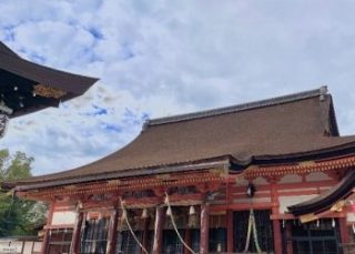 昼食後は八坂神社へ向かい、境内の美御前社では、肌に数滴つけると身も心も綺麗になるというご神水を、参加の皆さんの多くが肌につけていらっしゃいました。