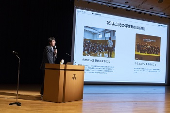 ご自身の就職活動の実体験を交えながら、中小企業の魅力や企業選びにおける視野の広さの重要性についてお話しいただきました。特に、ボランティア活動を通じて得られる成長や人とのつながりを“副産物”として前向きに捉える姿勢が印象的でした。