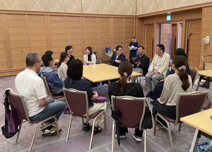 そして個人面談を終えると再びご父母の輪の中へ、終盤は3人の先生方を囲み皆様で懇談しました。最後に谷村先生より、大学では多様な学び方があるとしながら「卒業論文の執筆をもって学びの集大成とし、卒業を迎えてもらいたい」と力強いメッセージを残してくださいました。
